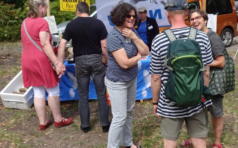 Bei strahlendem, aber nicht zu heissem Wetter konnten wir in diesem Jahr 215 große und kleine Gäste bei uns begrüßen. Viele an der eigenen Bienenhaltung Interessierte kamen und viele neue Insektenhisthilfen entstanden in der Werkstatt, die uns wie im Vorjahr wieder vom Schul-Umwelt-Zentrum Mitte zur Verfügung gestellte wurden. Ebenfalls kamen die Vorsitzenden verschiedener Imkervereine aus Pankow, Zehlendorf und Tempelhof-Schöneberg zu Besuch.