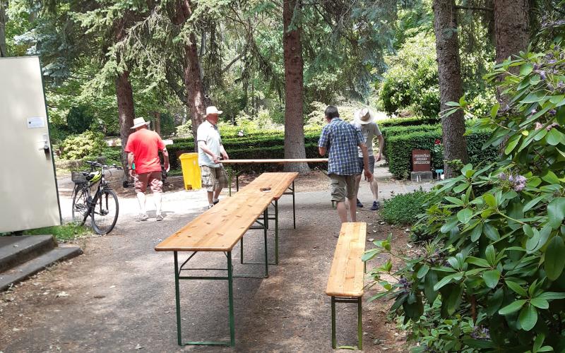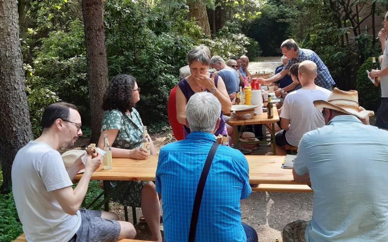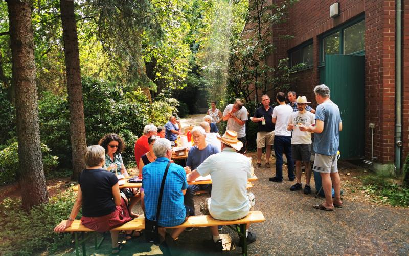 Am 19. Juni fand - natürlich draußen und mit Abstand - nach langer Zeit wieder ein Vereinstreffen statt: unsere Bienenrunde an der neuen Wachsküche. Der vorangegangene Anfängerkurs gesellte sich dazu, wir bewunderten die neue Technik und freuen uns, dass es in Kürze mit dem Betrieb losgehen kann!