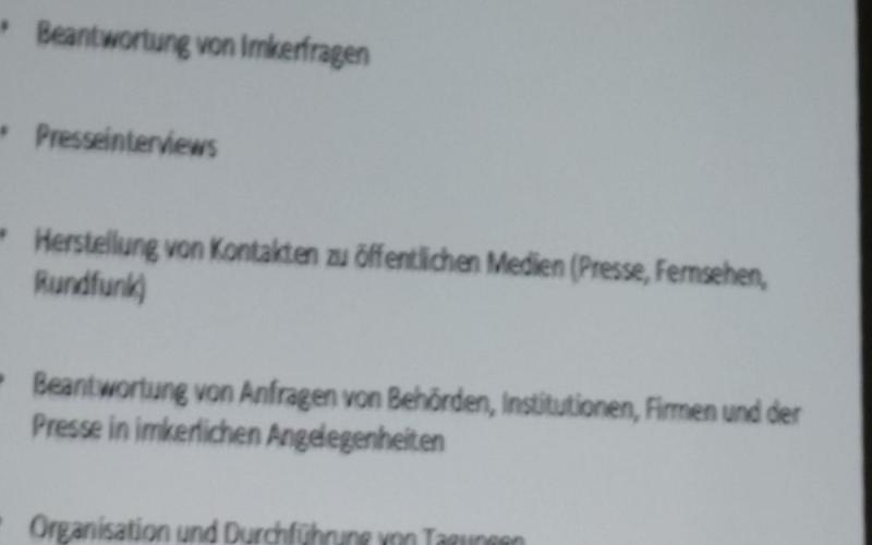 Als Gast war Frau Löwer, die Geschäftsführerin des DIB, mit dabei. Sie nahm in einem Vortrag die offenbar öfters geäußerten Vorwürfe an den DIB auf, nur für das Honigglas zu stehen und berichtete über Strukturen und Aufgaben des Verbandes.
