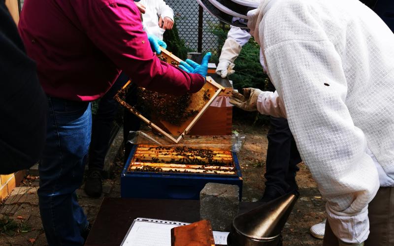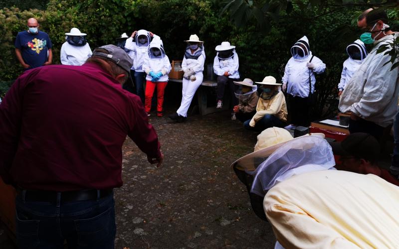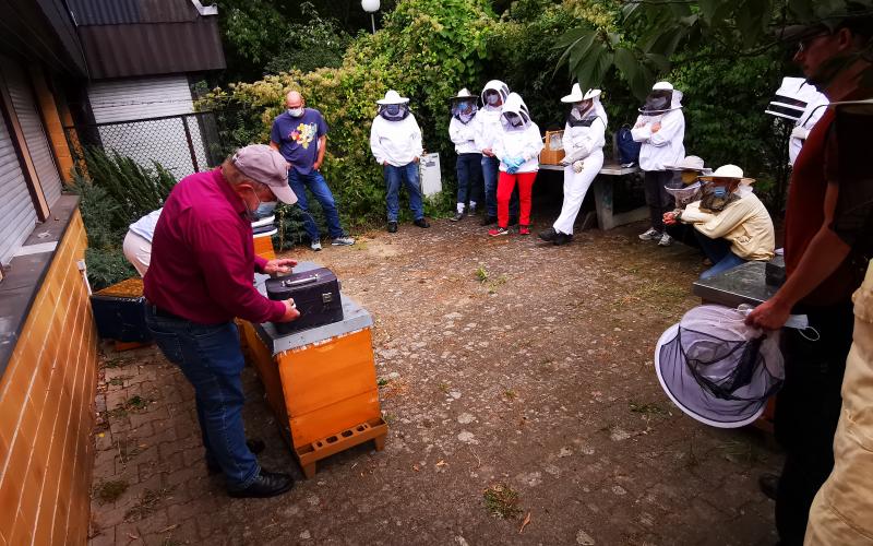 Am 29.8.2020 besuchte uns Guido Eich für einen Workshop zum Einwintern von Bienenvölkern. Das wurde wieder sehr spannend und trotz Corona hatten die insgesamt 31 Teilnehmer, die in zwei Gruppen und mit Masken antraten, ausreichend Gelegenheit zum Anfassen, Fragen-stellen und Über-die-Schulter-schauen.