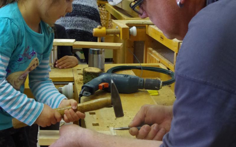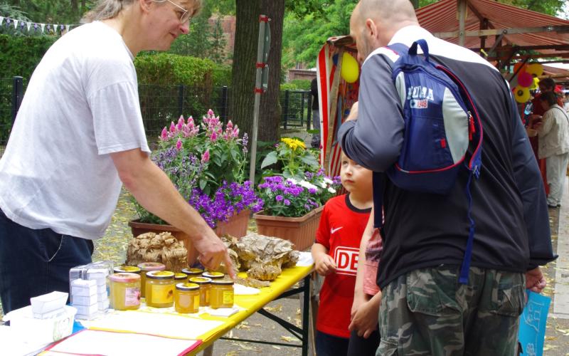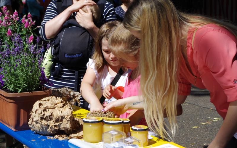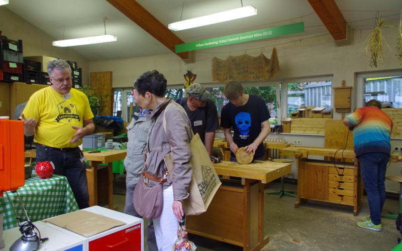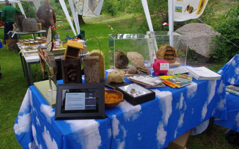 Zahlreiche Wildbienen-Nisthilfen entstanden in der Holzwerkstatt des SUZ, mit Wasser gefüllte Waben wurden in der Plexiglas-Schauschleuder geschleudert und bienenfreundliche Samenmischungen und Honig angeboten. Die Kinder konnten malen und basteln; ein Bienenquiz lockte mit Preisen.