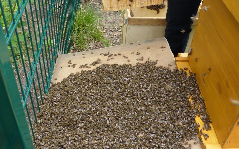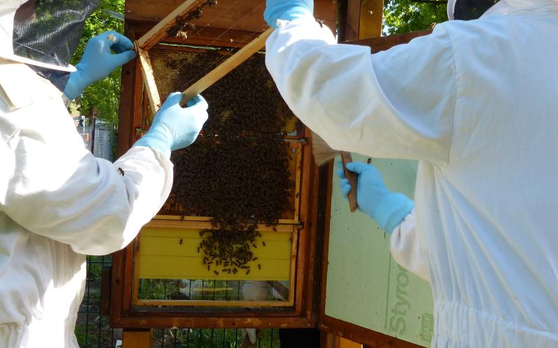 Bislang haben die Schüler schon viel Wichtiges und Wissenswertes über Bienen erfahren, aber jetzt hat die Imker AG auch ein eigenes Bienenvolk. Dr. von Orlow hat einen Schwarm gefangen und ihn den Schülern gespendet. Am 14. Mai war es soweit: Der Schwarm konnte in eine neue Schaubeute einlaufen.