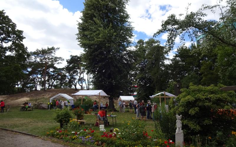 Bei strahlendem, aber nicht zu heissem Wetter konnten wir in diesem Jahr 215 große und kleine Gäste bei uns begrüßen. Viele an der eigenen Bienenhaltung Interessierte kamen und viele neue Insektenhisthilfen entstanden in der Werkstatt, die uns wie im Vorjahr wieder vom Schul-Umwelt-Zentrum Mitte zur Verfügung gestellte wurden. Ebenfalls kamen die Vorsitzenden verschiedener Imkervereine aus Pankow, Zehlendorf und Tempelhof-Schöneberg zu Besuch.