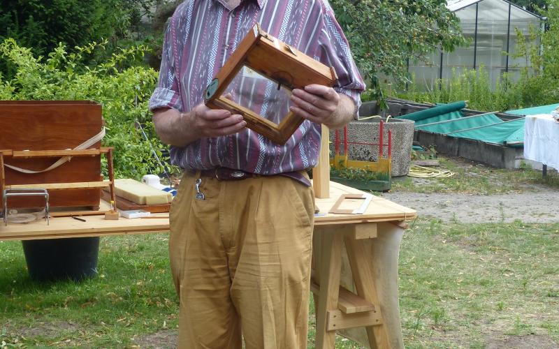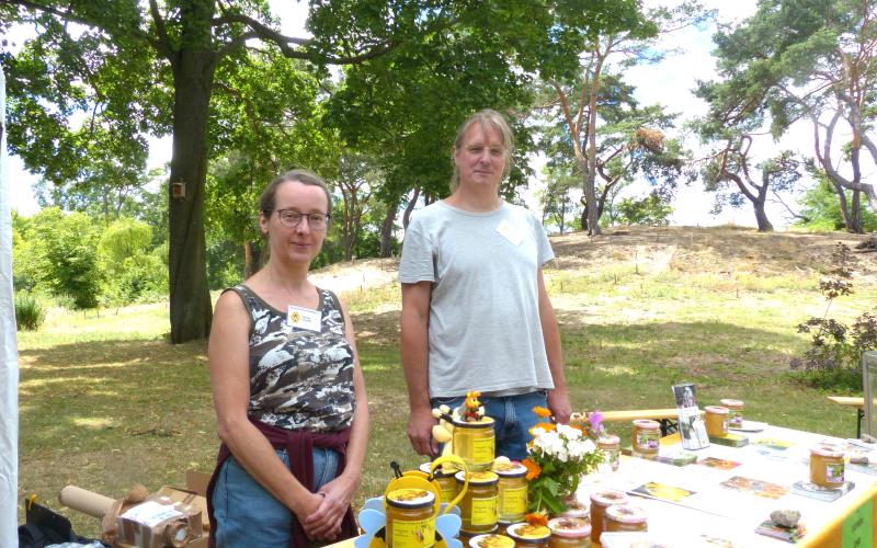 Robert Gummi zeigte Insektenfreundlich und -unfreundlich bepflanzte Blumenkästen, Dr. Klein zeigte allerlei nützliche Konstrukionen für die Bienenhaltung und natürlich gab es viel Honig zu verkosten und zu kaufen.