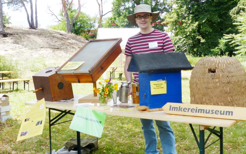 Erstmalig wurde ein "Imkereibedarfsflohmarkt" angeboten für dessen Betreuung wir uns bei Katharina Klünder bedanken - tatsächlich wechselte das eine oder andere Stück den Besitzer! Das Kindermalen und -basteln wurde von Familie Volbracht betreut und kam wieder gut an. Die AG Imkereimuseum zeigte einige Stücke aus der Sammlung und betreute den Schaukasten der in diesem Jahr gleich mit zwei Königinnen (davon hatte eine ihr Plättchen verloren) aufwarten konnte.