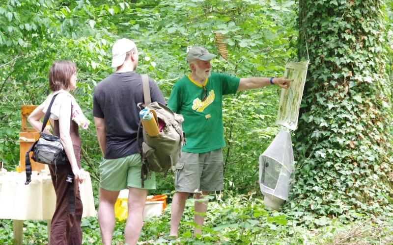Er betreibt zusammen mit seiner Ehefrau seit über 40 Jahren eine umfangreiche Imkerei im Langstroth-Maß mit eigenem Wachskreislauf. Er zeigte uns das Ausschmelzen der Waben und das Giessen der Mittelwände, die er nur mit etwas Wachs in die drahtfreien Langstroth-Rähmchen befestigt und mit ein paar Zahnstochern ausmittelt.