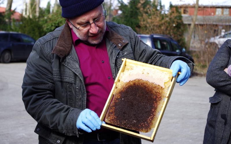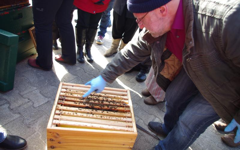 Im Vortrag empfahl er frühes Aufsetzen der Honigräume (VOR der Obstbaumblüte, etwa zur Weidenblüte) und Erweitern VOR dem klassischen "Durchhängen" der Bienen um Schwarmfreude gar nicht mehr aufkommen zu lassen. Dunkle Waben können bereits im zeitigen Frühjahr entfernt werden; sie wirken schwarmfördernd.Glänzender Pollen zeigt Schwarmvorbereitungen an; stumpfer Pollen die Anwesenheit einer Königin. Bei Schwarmabgang empfiehlt er, den Schwarm an der Stelle des abgeschwärmten Muttervolkes aufzustellen und die Honigräume dort aufzusetzen sobald der Schwarm baut - dann wird der Schwarm mit den restlichen Flugbienen des Muttervolkes verstärkt und bringt Honig. Schwach überwinterte Völker sollten nicht aufgesetzt, sondern nur mit anderen Schwächlingen des Standes vereinigt werden. Einräumiges/einzarigiges Halten ist in allen gängigen Systemen möglich!