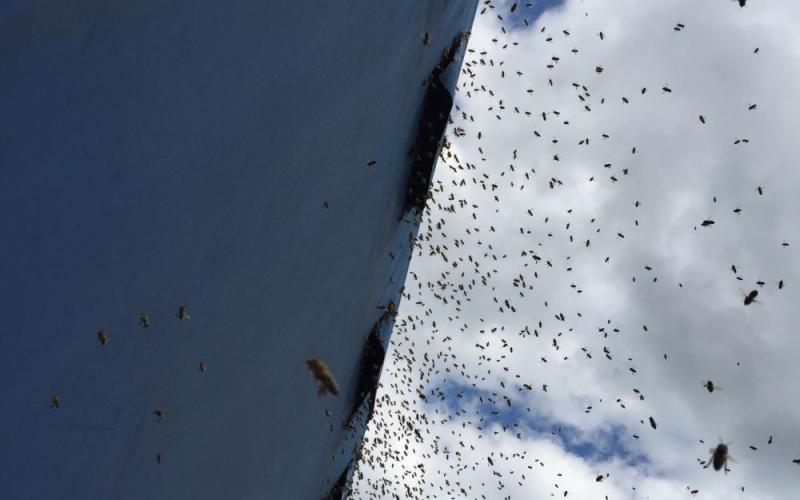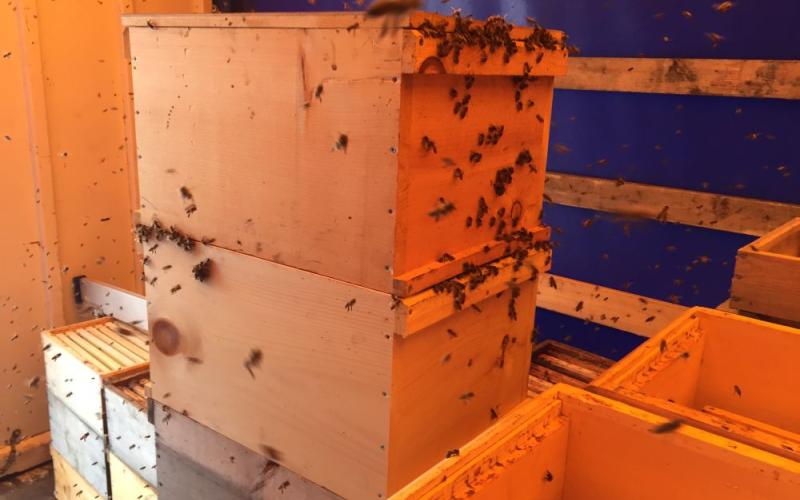 Ein Bienenschwarm am Lkw war die Meldung aber vor Ort stellte es sich als imkerlicher Ausnahmezustand dar: Unser Mitglied Mesut Erdem fotografierte diesen Fall schwerer Räuberei an leergeschleuderten Honigzargen, die von einem Großimker in einem Industriegebiet in Reinickendorf gelagert wurden. In Massen fielen die Bienen über die Zargen her und verursachten große Aufregung unter Passanten, Polizei und Ordnungsamt. Der herbeigerufene Amtstierarzt konnte schließlich erreichen, dass der Hänger am Abend durch den Halter entfernt wurde. Man kann nur sehr hoffen, dass die Zargen wirklich nichts außer Honig enthielten - Erkrankungen wie die Amerikanische Faulbrut können durch solche Zwischenfälle hervorragend verbreitet werden!